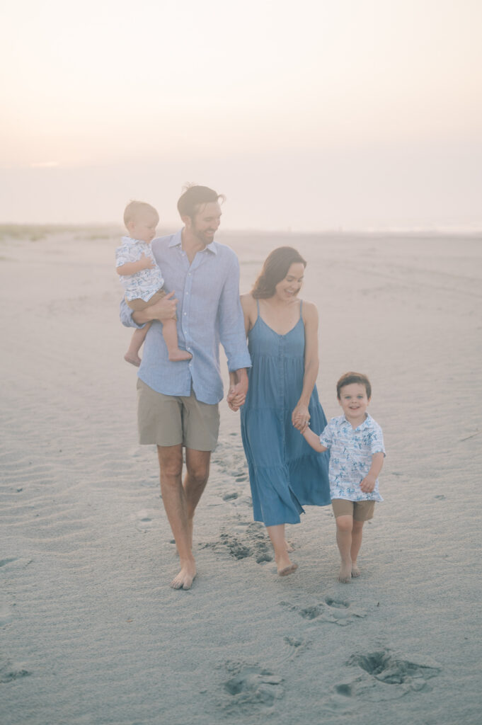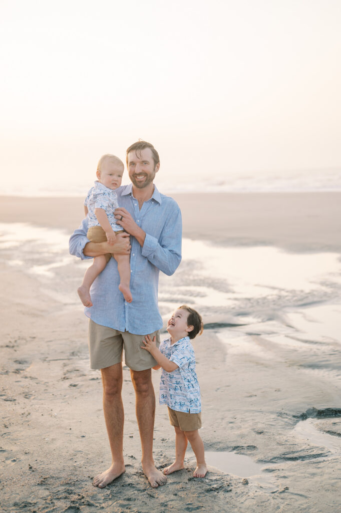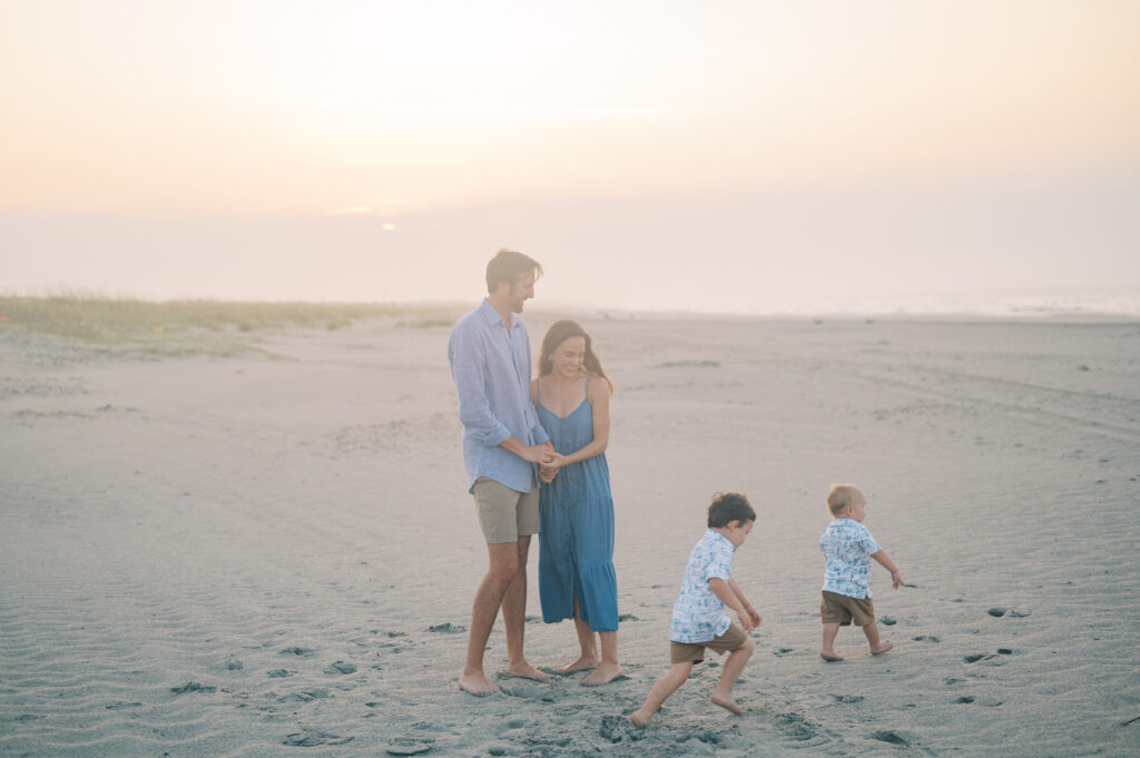 As the session went on, the fog slowly lifted off the water and the soft sunrise light started coming through. With the whole beach to ourselves, we wandered along the shoreline and grabbed a few more portraits before the boys decided they had officially run enough for one morning.